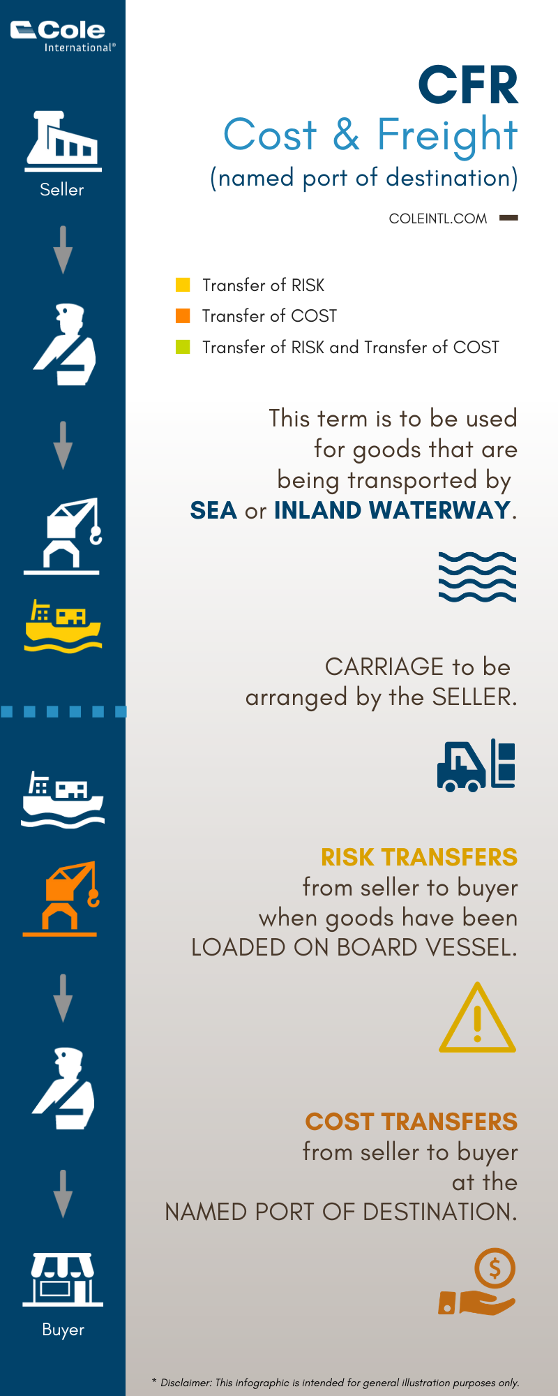 - CFR - Cost and Freight (named port of destination)