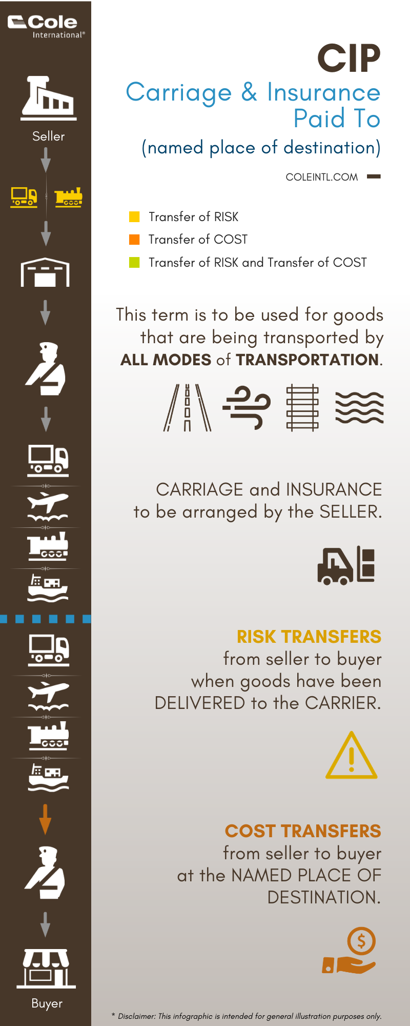 - CIP - Carriage and Insurance Paid To (named place of destination)