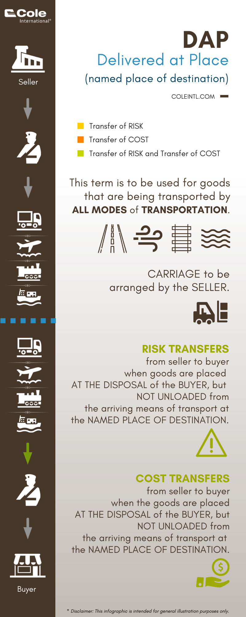 - DAP - Delivered at Place (named place of destination)