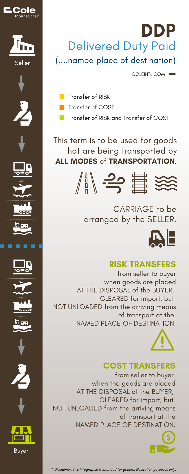- DDP - Delivered Duty Paid (named place of destination)