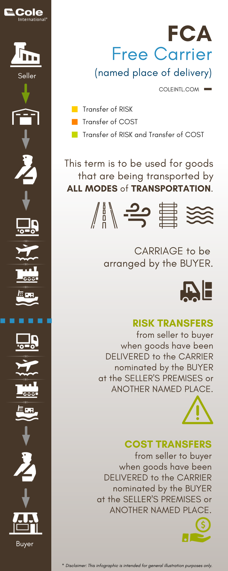 - FCA - Free Carrier (named place of delivery)